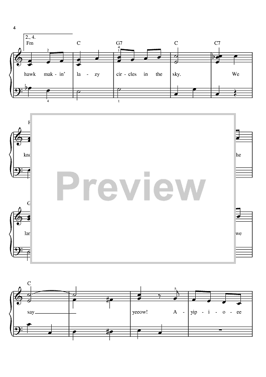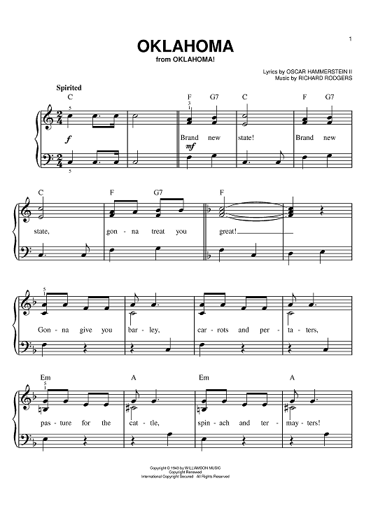 Digital Sheet Music for Oklahoma by Richard Rodgers, Oscar Hammerstein II scored for Easy Piano; id:398107