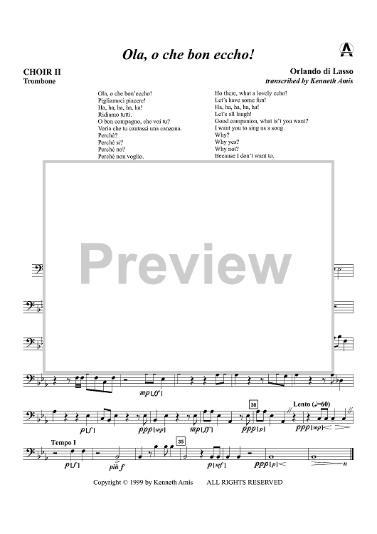 "Ola, o che bon eccho! - Choir 2, Trombone" Sheet Music by Empire Brass