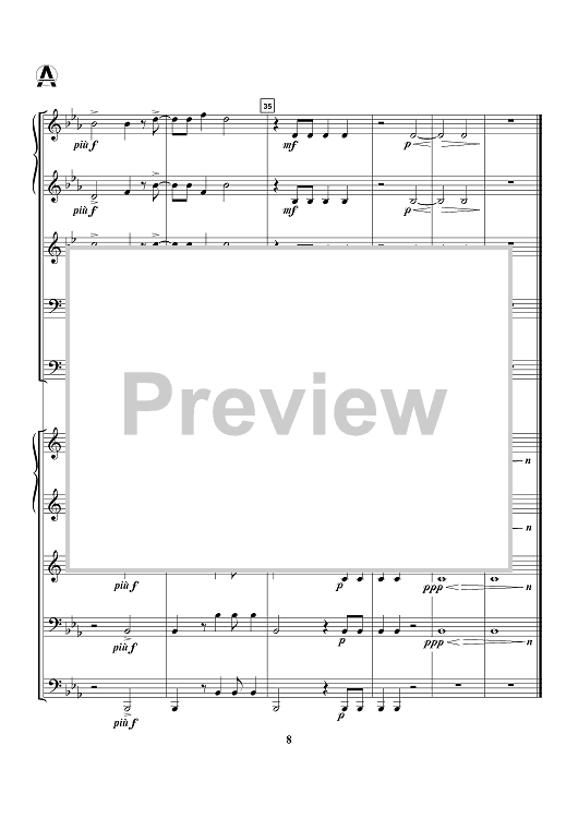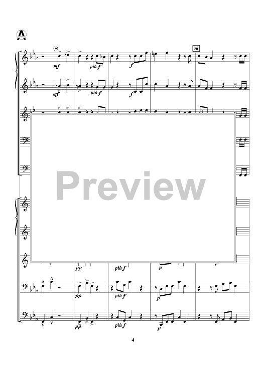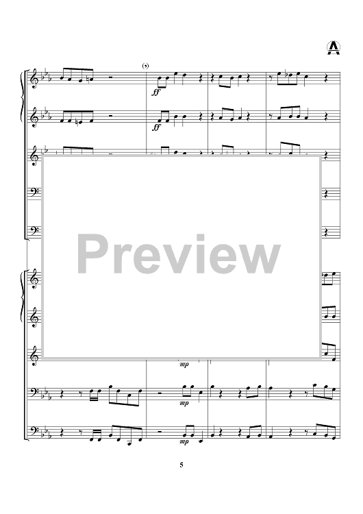 As recorded by Empire Brass. Instrumentation: double brass choir (quartet [4 trumpets, 2 horns & 2 trombones] or quintet [using provided optional tuba parts) Trumpet parts provided in Bb and C Optional horn in F parts (substitute for 2nd trumpets) provided Optional trombone parts (substitute for horns) provided Optional horn in F parts (substitute for trombones) provided