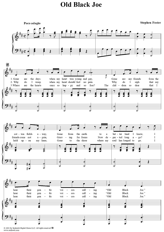 Digital Sheet Music for Old Black Joe by Stephen Foster scored for Piano/Vocal; id:252813