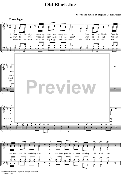 Digital Sheet Music for Old Black Joe by Stephen Foster scored for Four-part Mixed Chorus; id:254982