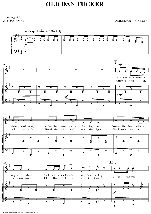 "Old Dan Tucker" Sheet Music by American Folk Song