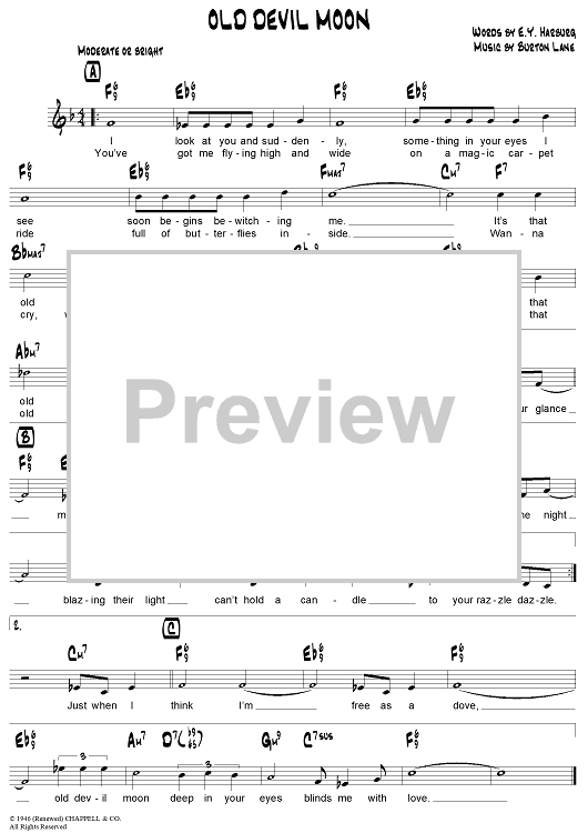 Digital Sheet Music for Old Devil Moon by Tony Bennett, Burton Lane, E.Y. "Yip" Harburg scored for Lead Sheet; id:307686