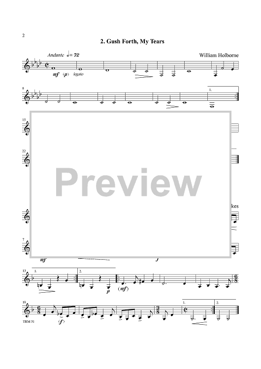 Six trios from English renaissance masters Morley, East, Weelkes, etc. Perfect for seasonal party music! 1. How Merrily We Live 2. Gush Forth, My Tears 3. Late in My Rash Accounting 4. If My Complaints 5. Though Philomela Lost Her Love 6. As Fair as Morn