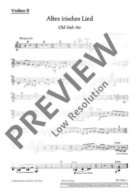 "Old Irish Air - Violin II" Sheet Music by Paul Hindemith