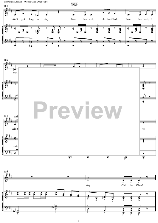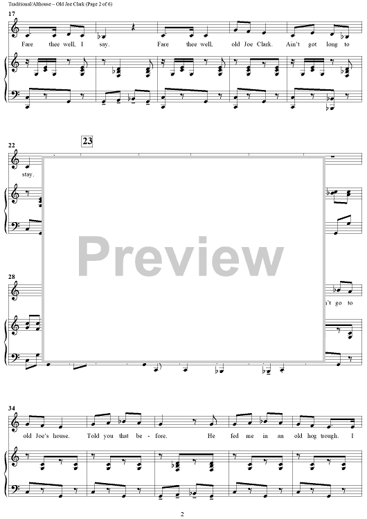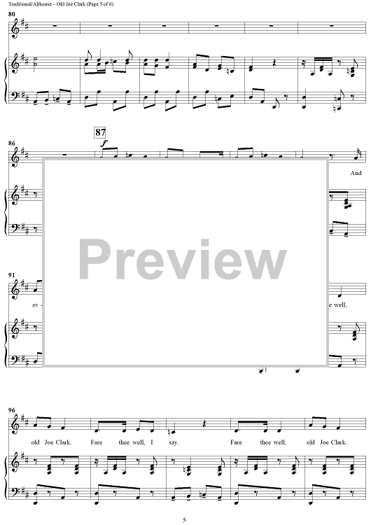 "Old Joe Clark" Sheet Music by Southern Fiddle Song