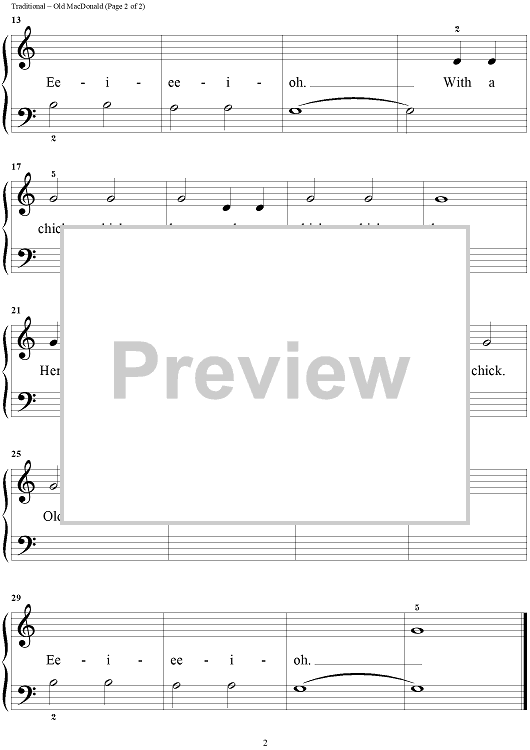 Digital Sheet Music for Old MacDonald by Richard Bradley, Traditional scored for Five Finger Piano/Vocal; id:283569