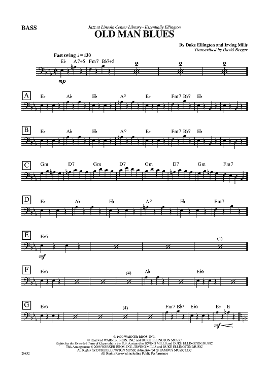 "Old Man Blues - Bass" Sheet Music by Duke Ellington