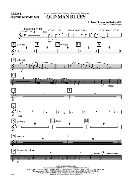 Digital Sheet Music for Old Man Blues - Soprano Sax/Alto Sax by Duke Ellington, Irving Mills, David Berger scored for Jazz Ensemble; id:360067