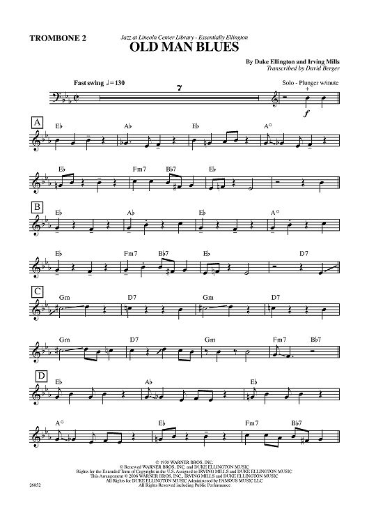 Digital Sheet Music for Old Man Blues - Trombone 2 by Duke Ellington, Irving Mills, David Berger scored for Jazz Ensemble; id:360074