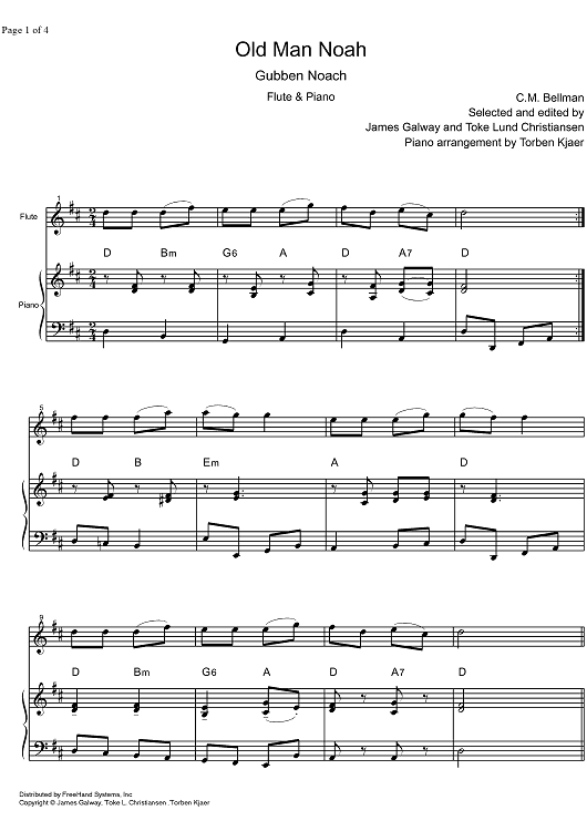 Digital Sheet Music for Old Man Noah - Score by , Carl Michael Bellman, James Galway scored for Flute/Piano; id:324674