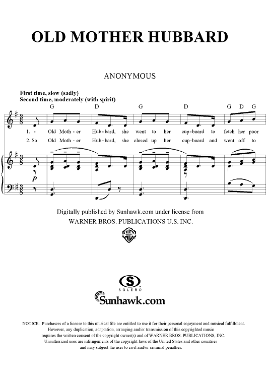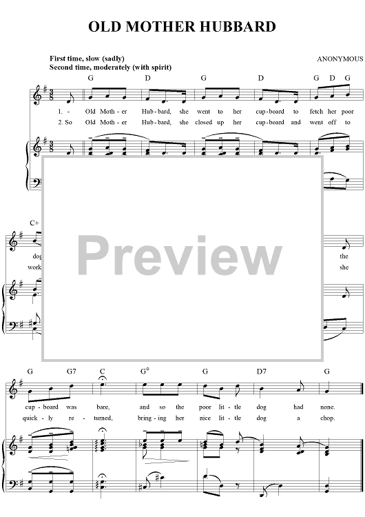 Digital Sheet Music for Old Mother Hubbard by Unknown Writer scored for Piano/Vocal/Chords; id:277123