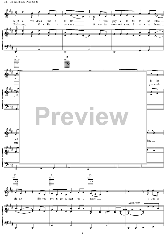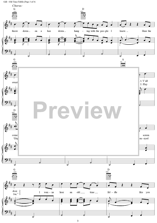 Digital Sheet Music for Old Time Fiddle by Vince Gill, Leslie Satcher scored for Piano/Vocal/Chords; id:296963