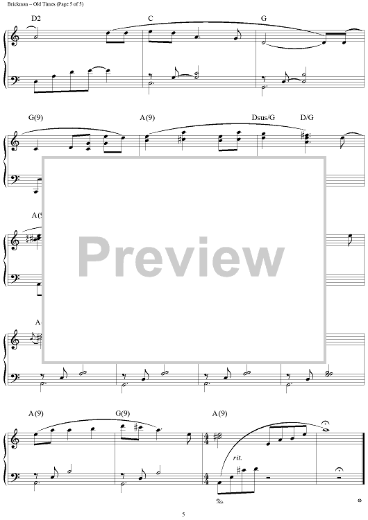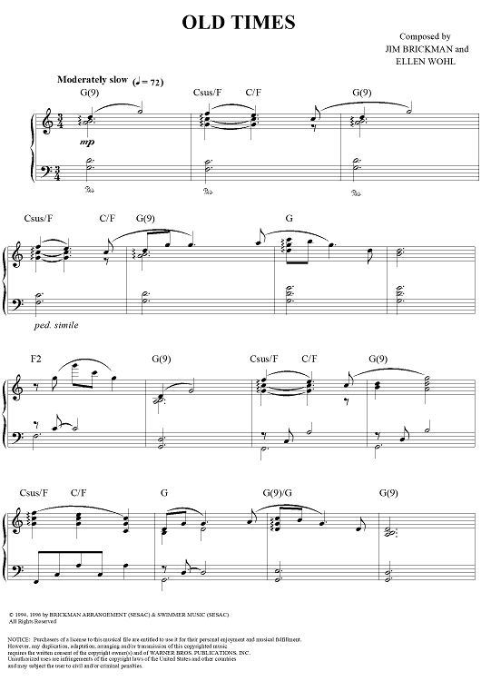 Digital Sheet Music for Old Times by Jim Brickman, Ellen Wohl scored for Piano Solo; id:113090