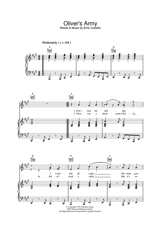 "Oliver's Army" Sheet Music by Elvis Costello