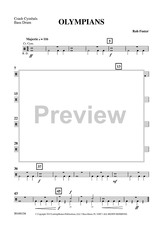 Digital Sheet Music for Olympians - Crash Cymbals, Bass Drum by Rob Foster scored for Concert Band; id:459124