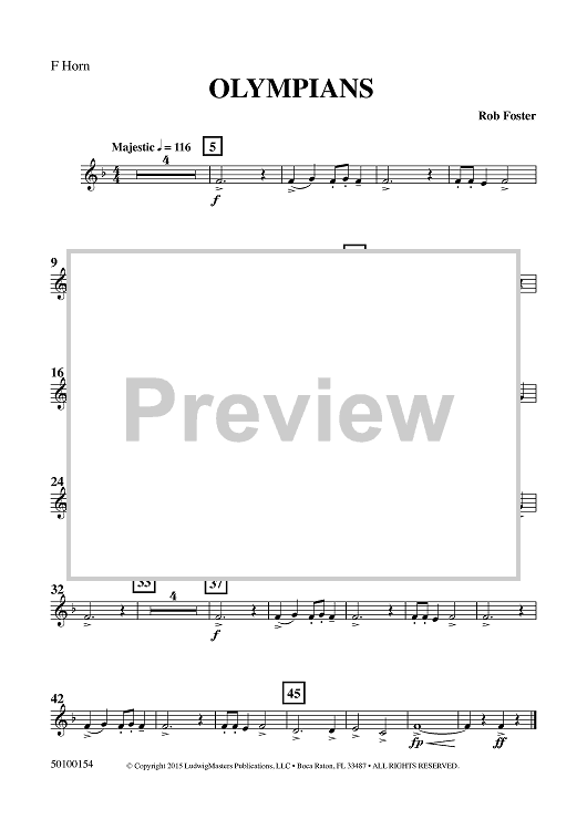 Digital Sheet Music for Olympians - Horn in F by Rob Foster scored for Concert Band; id:459118