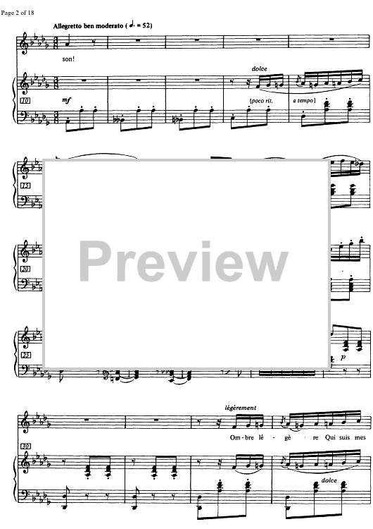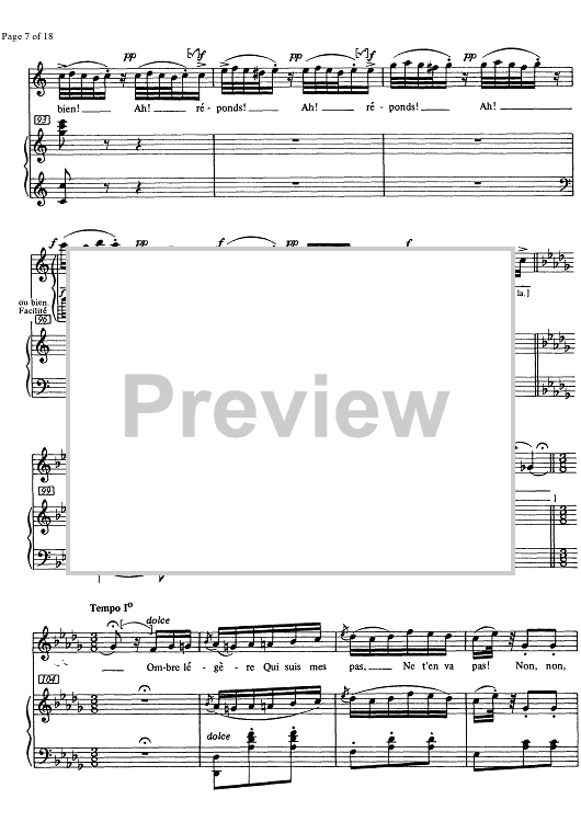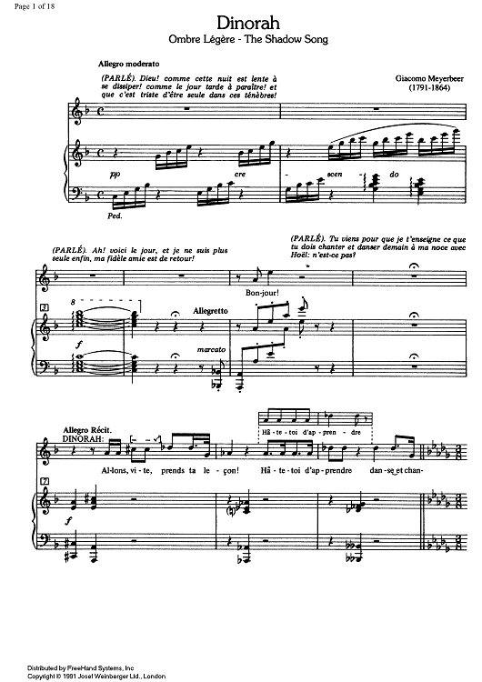 Digital Sheet Music for Ombre Légère from Dinorah by Giacomo Meyerbeer scored for Soprano/Piano; id:332341