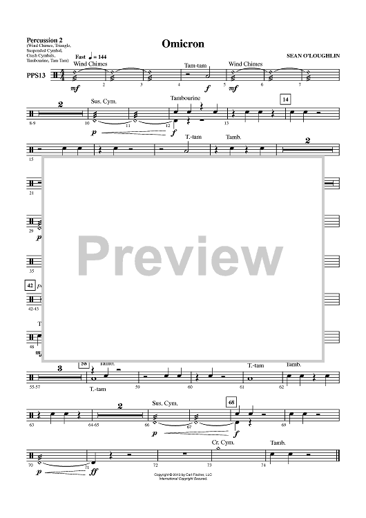 Digital Sheet Music for Omicron - Percussion 2 by Sean O'Loughlin scored for Concert Band; id:435963