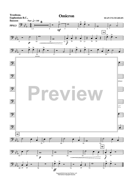 Digital Sheet Music for Omicron - Trombone, Euphonium BC, Bassoon by Sean O'Loughlin scored for Concert Band; id:435957