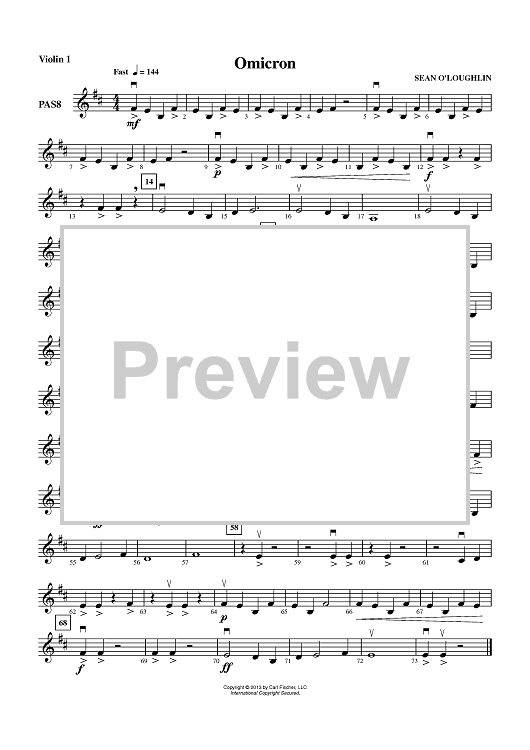 "Omicron - Violin 1" Sheet Music by Sean O'Loughlin