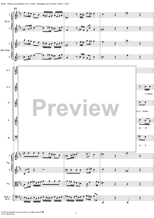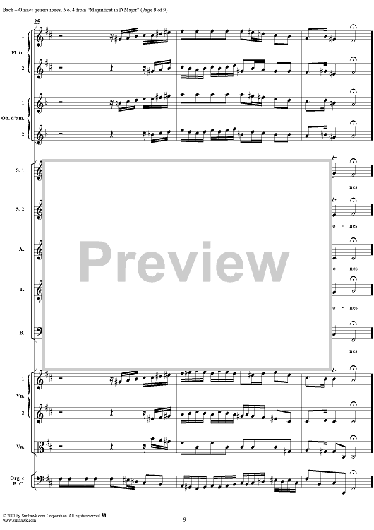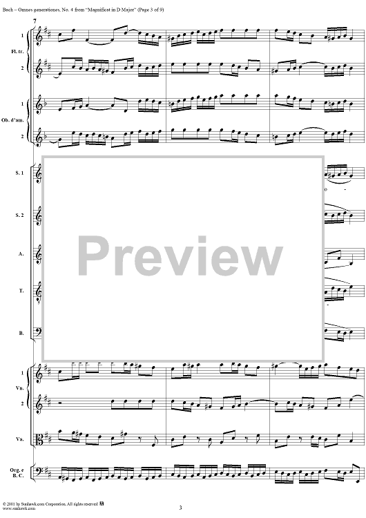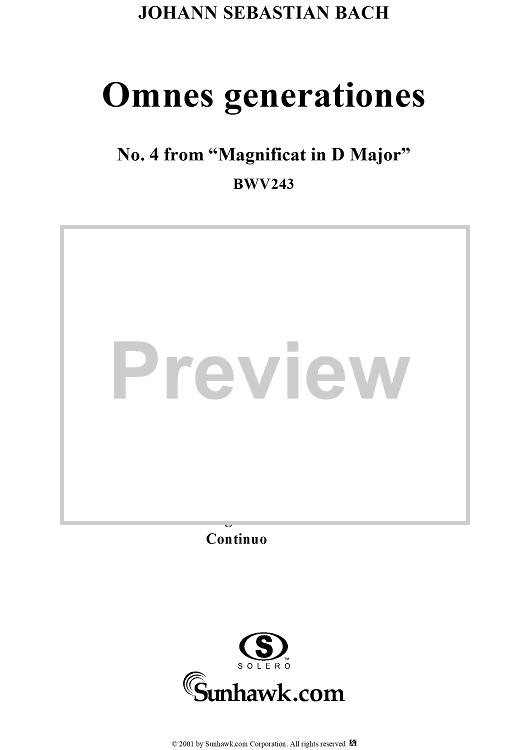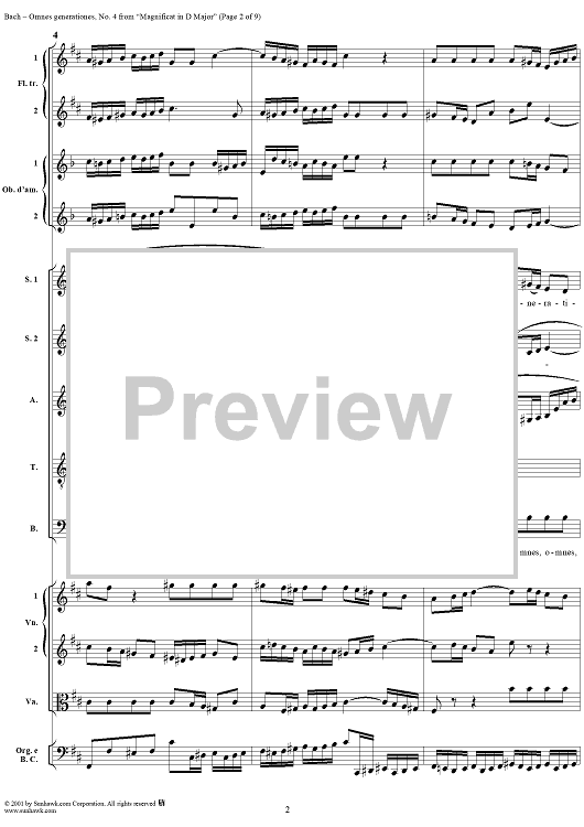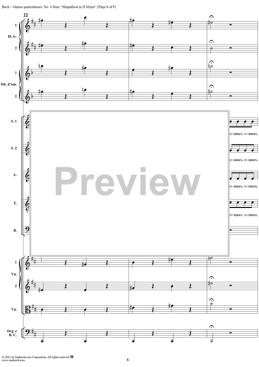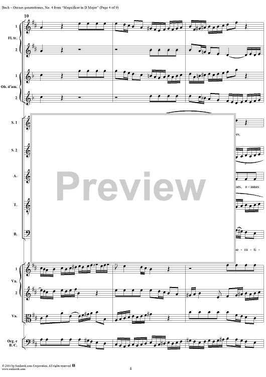 Digital Sheet Music for Omnes generationes (Chorus), No. 4 from "Magnificat in D Major" by Johann Sebastian Bach scored for Four-part Mixed Chorus; id:266786
