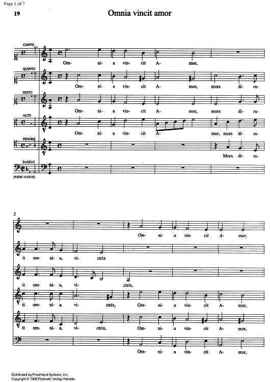 Digital Sheet Music for Omnia vincit amor by , Alessandro Orologio scored for SATB Choir; id:334002