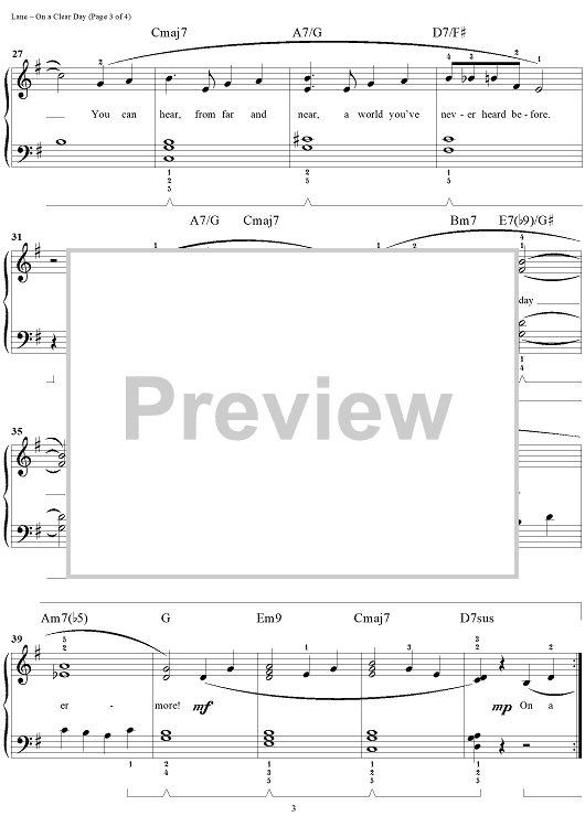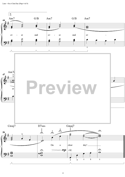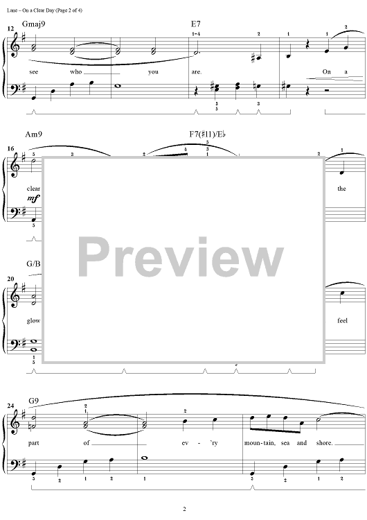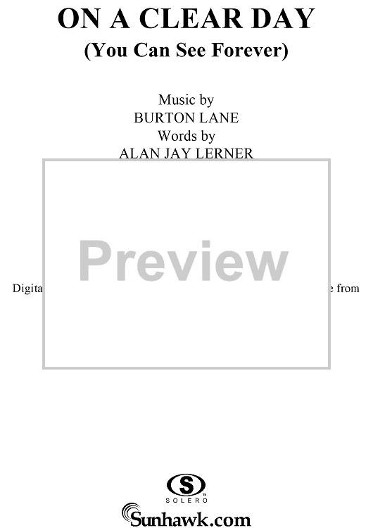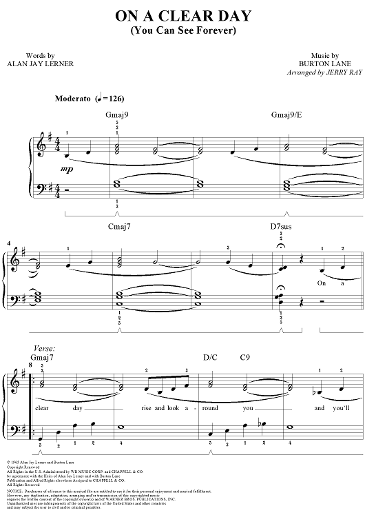 Digital Sheet Music for On a Clear Day by Jerry Ray, Burton Lane, Alan Jay Lerner scored for Easy Piano/Vocal; id:289488