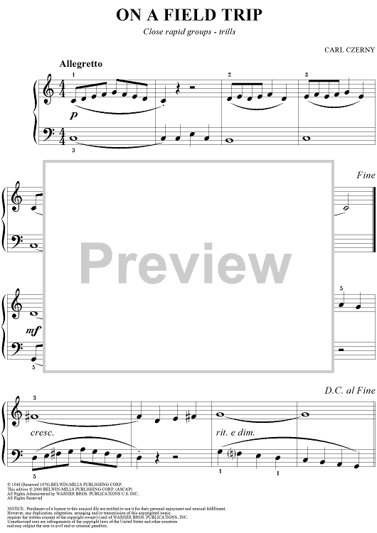Digital Sheet Music for On a Field Trip by Carl Czerny scored for Easy Piano; id:295834