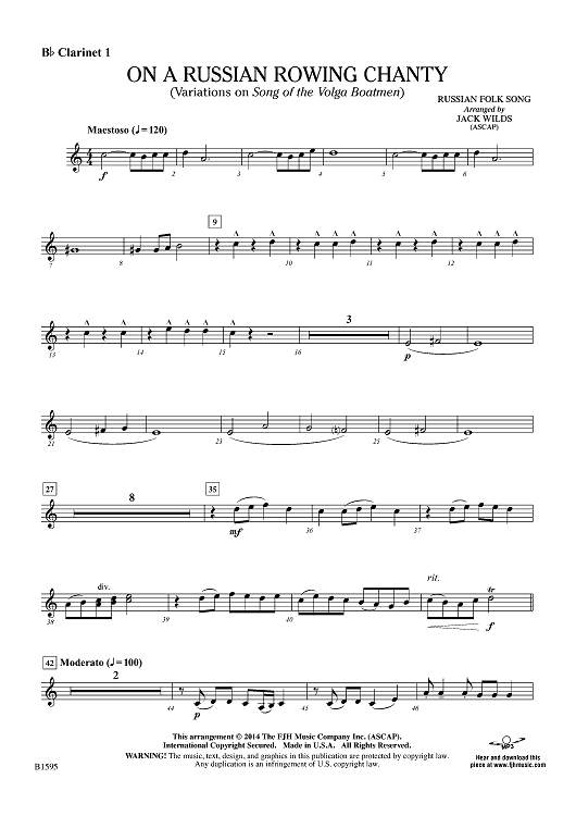 Digital Sheet Music for On a Russian Rowing Chanty - Bb Clarinet 1 by Jack Wilds scored for Concert Band; id:446035