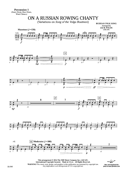 Digital Sheet Music for On a Russian Rowing Chanty - Percussion 1 by Jack Wilds scored for Concert Band; id:446053