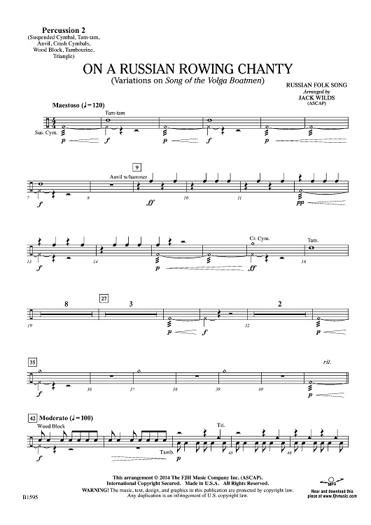 Digital Sheet Music for On a Russian Rowing Chanty - Percussion 2 by Jack Wilds scored for Concert Band; id:446054
