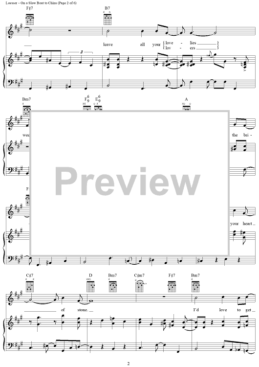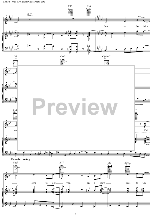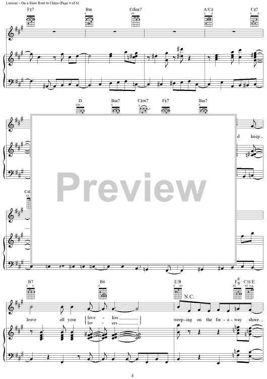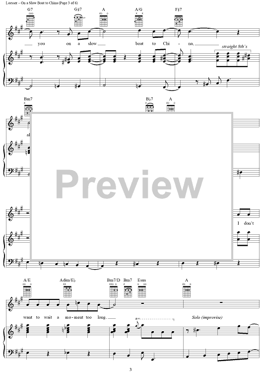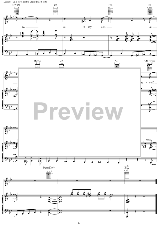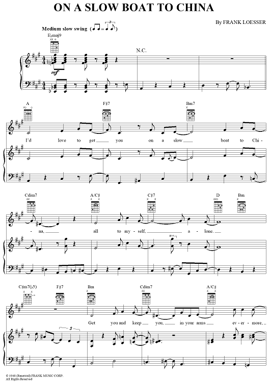 Digital Sheet Music for On a Slow Boat to China by Bing Crosby, Dean Martin, Kay Kyser, Benny Goodman, Frank Loesser scored for Piano/Vocal/Chords; id:385715