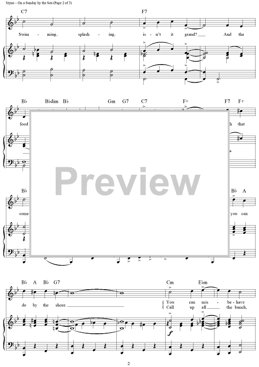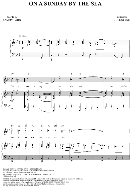 Digital Sheet Music for On a Sunday By the Sea by Jule Styne, Sammy Cahn scored for Piano/Vocal/Chords; id:315172