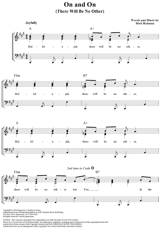 Digital Sheet Music for On and On by Matt Redman scored for Piano/Vocal/Chords; id:220679