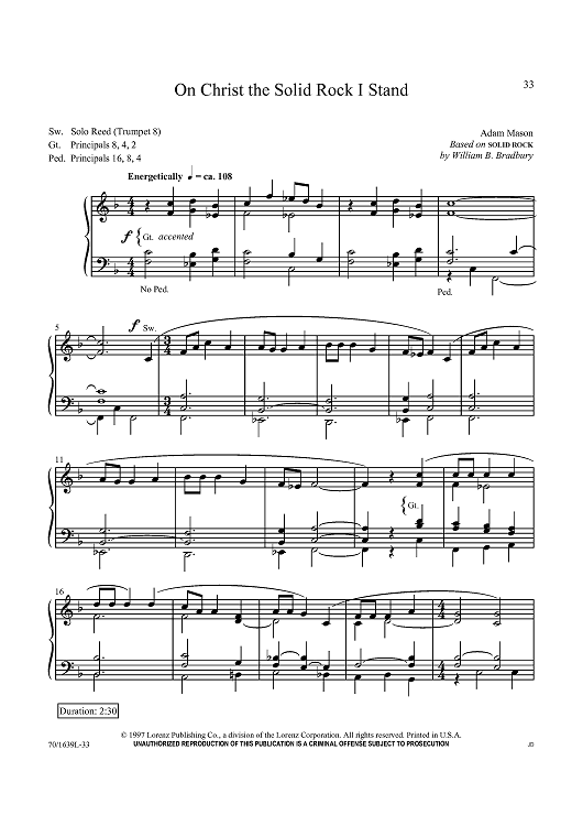 Digital Sheet Music for On Christ the Solid Rock I Stand by William B. Bradbury, Adam Mason scored for Organ Solo; id:434019