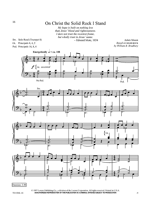 Digital Sheet Music for On Christ the Solid Rock I Stand by William B. Bradbury, Adam Mason scored for Organ Solo; id:434088