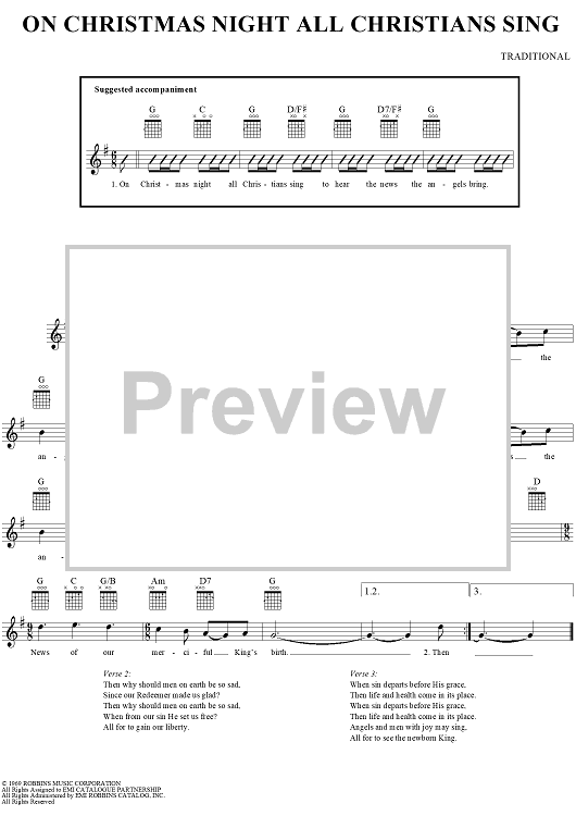 "On Christmas Night All Christians Sing" Sheet Music by Traditional