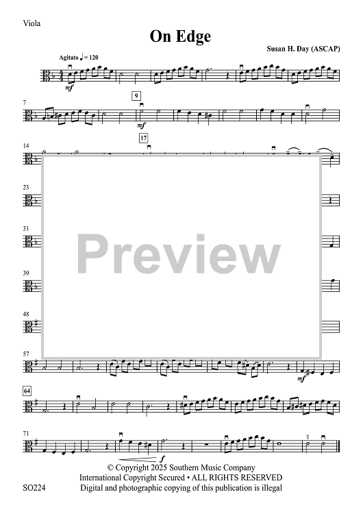 Digital Sheet Music for On Edge - Viola by Susan Day scored for String Orchestra; id:507865