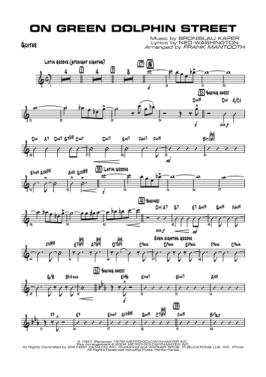 "On Green Dolphin Street - Guitar" Sheet Music by Bronislau Kaper