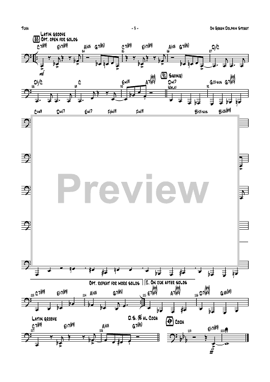 Digital Sheet Music for On Green Dolphin Street - Tuba by Ned Washington, Bronislau Kaper, Frank Mantooth scored for Jazz Ensemble; id:358956
