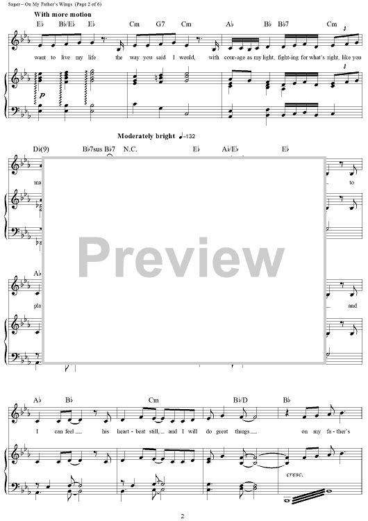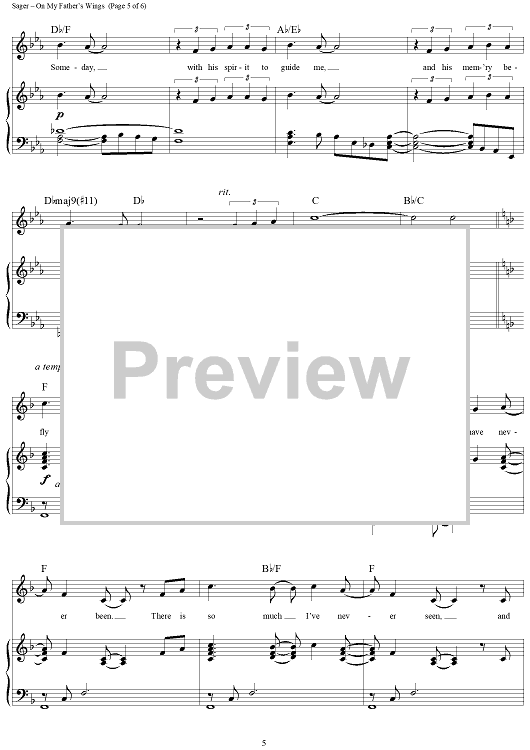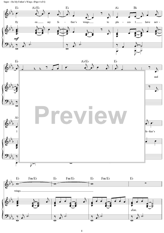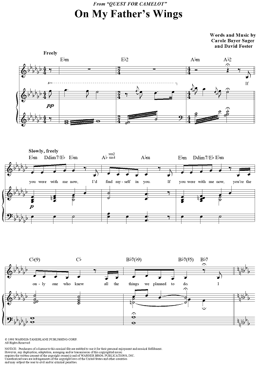 Digital Sheet Music for On My Father's Wings by Carole Bayer Sager, The Corrs, David Foster scored for Piano/Vocal/Chords; id:110255