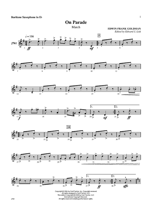 "On Parade March - Baritone Saxophone" Sheet Music by Edwin Franko Goldman