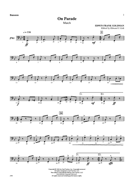 "On Parade March - Bassoon" Sheet Music by Edwin Franko Goldman