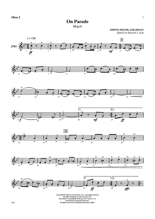 "On Parade March - Oboe 2" Sheet Music by Edwin Franko Goldman