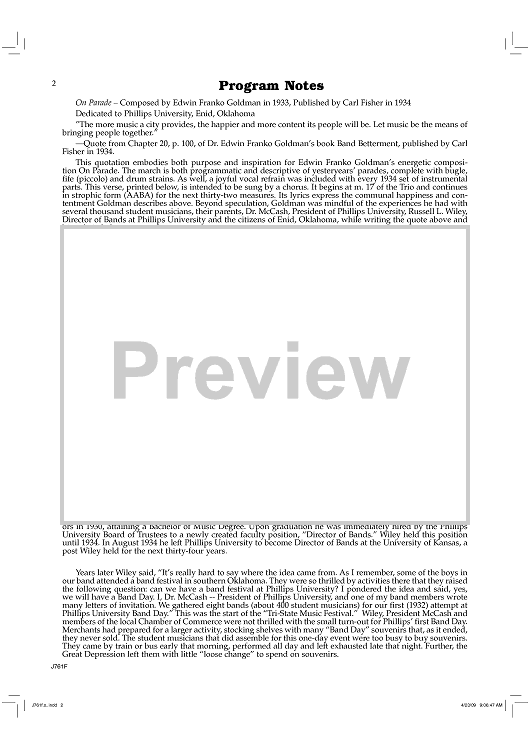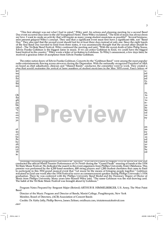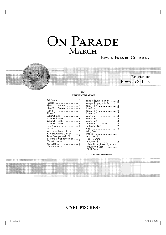 Digital Sheet Music for On Parade March - Score by , Edwin Franko Goldman scored for Concert Band; id:406362