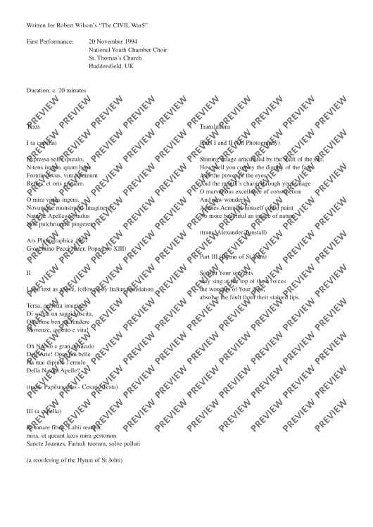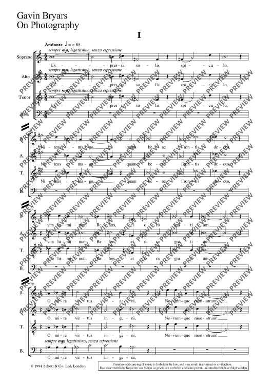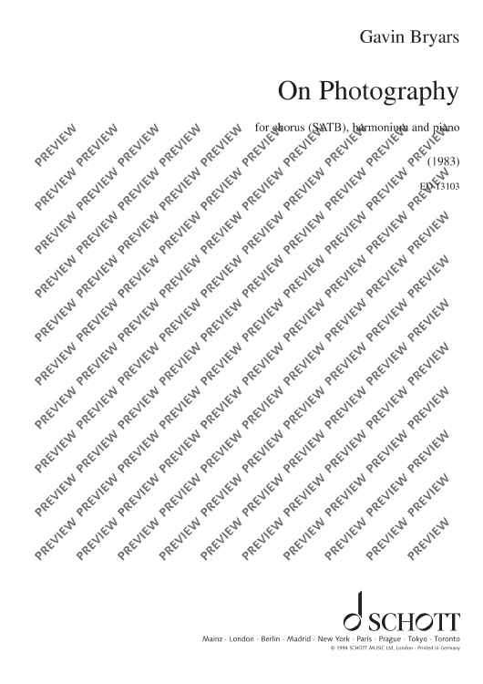 One of Gavin Bryars' early major choral works, On Photography uses texts by Pope Leo XIII combining a modern subject matter (photography) and archaic language (Latin) with music of timeless beauty. This title is accompanied by a harmonium/piano part (ED 13178).