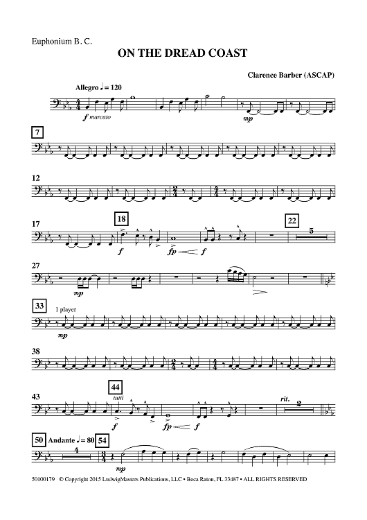 Digital Sheet Music for On the Dread Coast - Euphonium BC by , Clarence Barber scored for Concert Band; id:461576