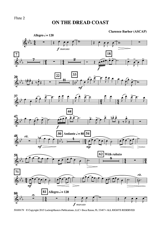 Digital Sheet Music for On the Dread Coast - Flute 2 by , Clarence Barber scored for Concert Band; id:461554