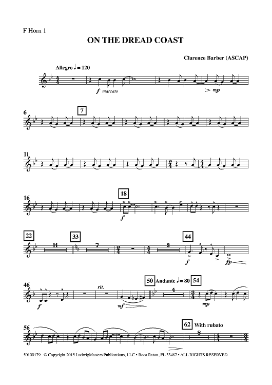 "On the Dread Coast - Horn 1 in F" Sheet Music by Clarence Barber